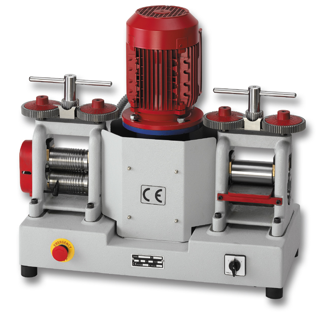 Das angetriebene Walzwerk DRM C130 ist für optimale Festigkeit und Steifigkeit aus Gusseisen gefertigt. Das C130 ist ein angetriebenes Kombinationswalzwerk für das Fräsen von Flachmaterial und Vierkantdraht. Der 1,1 KW Motor ist stark genug für den Dauerbetrieb.