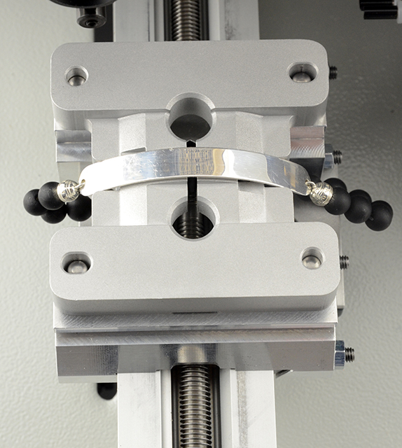 Praktische Spannbacken passend zur Gravograph Graviermaschine M20J. Mit Hilfe dieser Spannbacken lässt sich ganz einfach Schmuck (z.B. Id-Bänder), wie z.B. der Marke Thomas Sabo, einspannen.