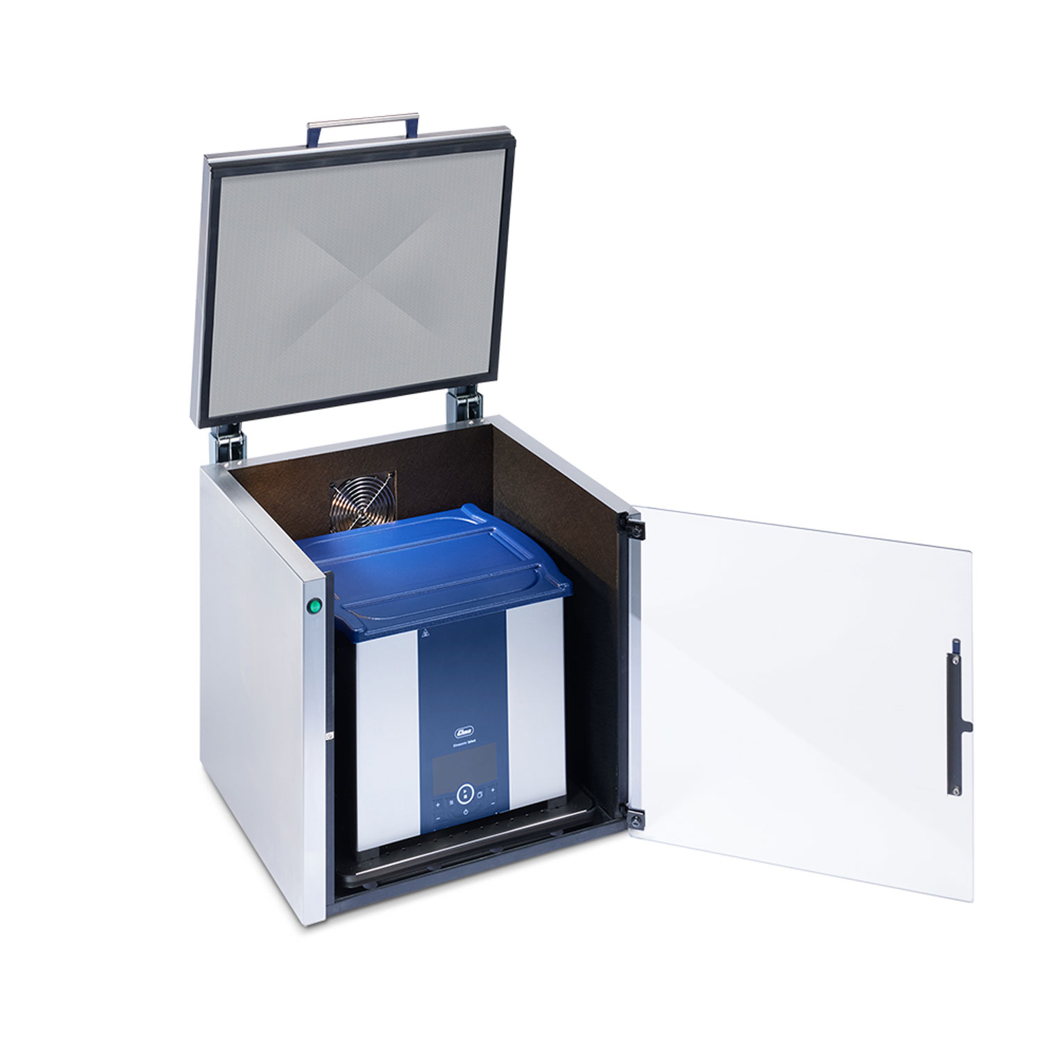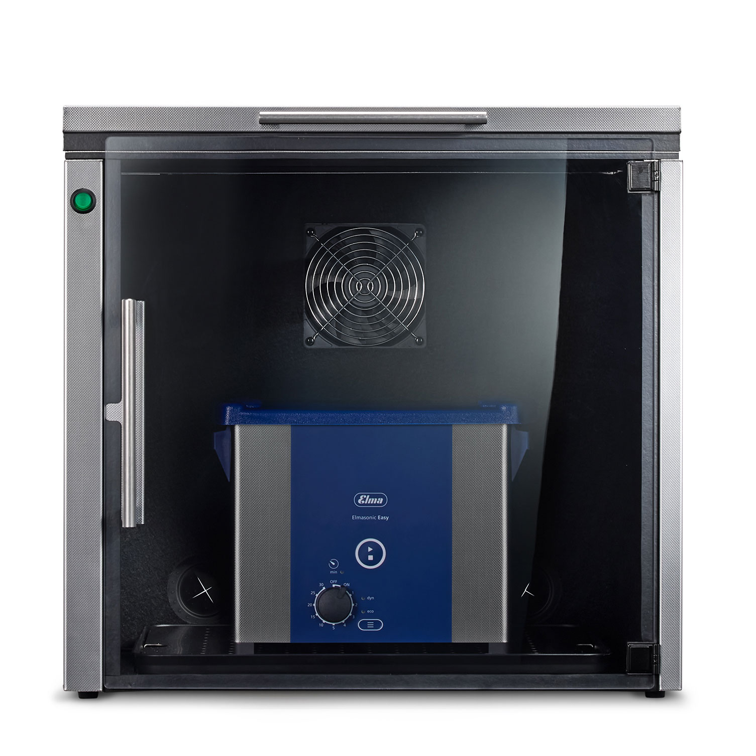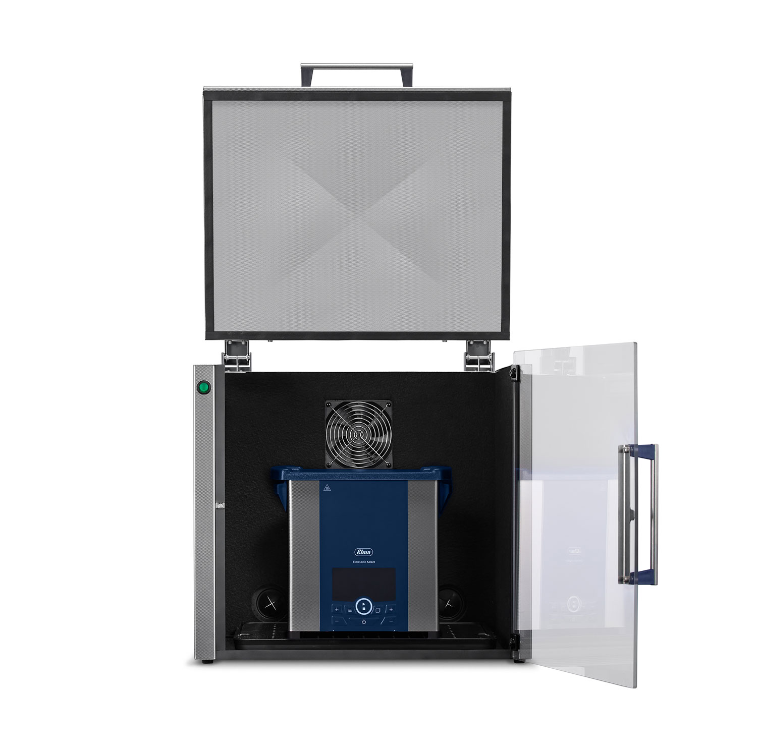 Die neue Elma Mutebox stellt ein geräuscharmes Reinigen sicher. Ein leiser Lüfter und eine optimale Isolierung sorgen für ein angenehmes, gesundheitsschonendes und leises Arbeiten beim Einsatz von Ultraschallgeräten, ob zum Zweck der Reinigungsoder für die Probenvorbereitung. Zudem saugt der Lüfter Kondenswasser und Dämpfe nach inten ab. Die Geräusche werden mit der Elma Mutebox um max. 85 % (d. h. im Vergleich zum Vorgängermodell um nochmals 30 %) reduziert. Eine Beleuchtung des Innenraums und die verglaste Tür ermöglichen, den Reinigungsprozess zu jeder Zeit beobachten zu können. Zwei voneinander unabhängige Zugänge sorgen dafür, dass das Reinigungsgut und das Ultraschallgerät stets gut erreichbar sind. Die in Eigenfertigung hergestellte Mutebox besteht aus hochwertigem Stahl, lässt sich einfach reinigen und stellt so auch einen hygienischen Betrieb sicher.