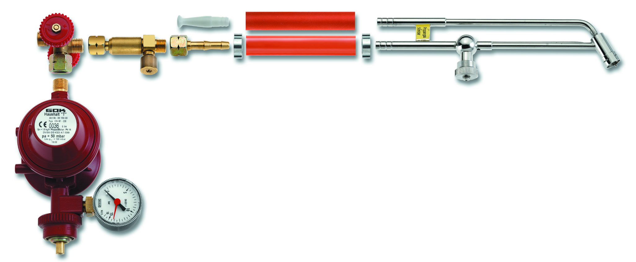 Voor propaangas tot 50 mbar. De meest gebruikte soldeerbuis voor de goudsmit. De instelling van de vlamgrootte gebeurt met een plugkraan aan de gasleiding.