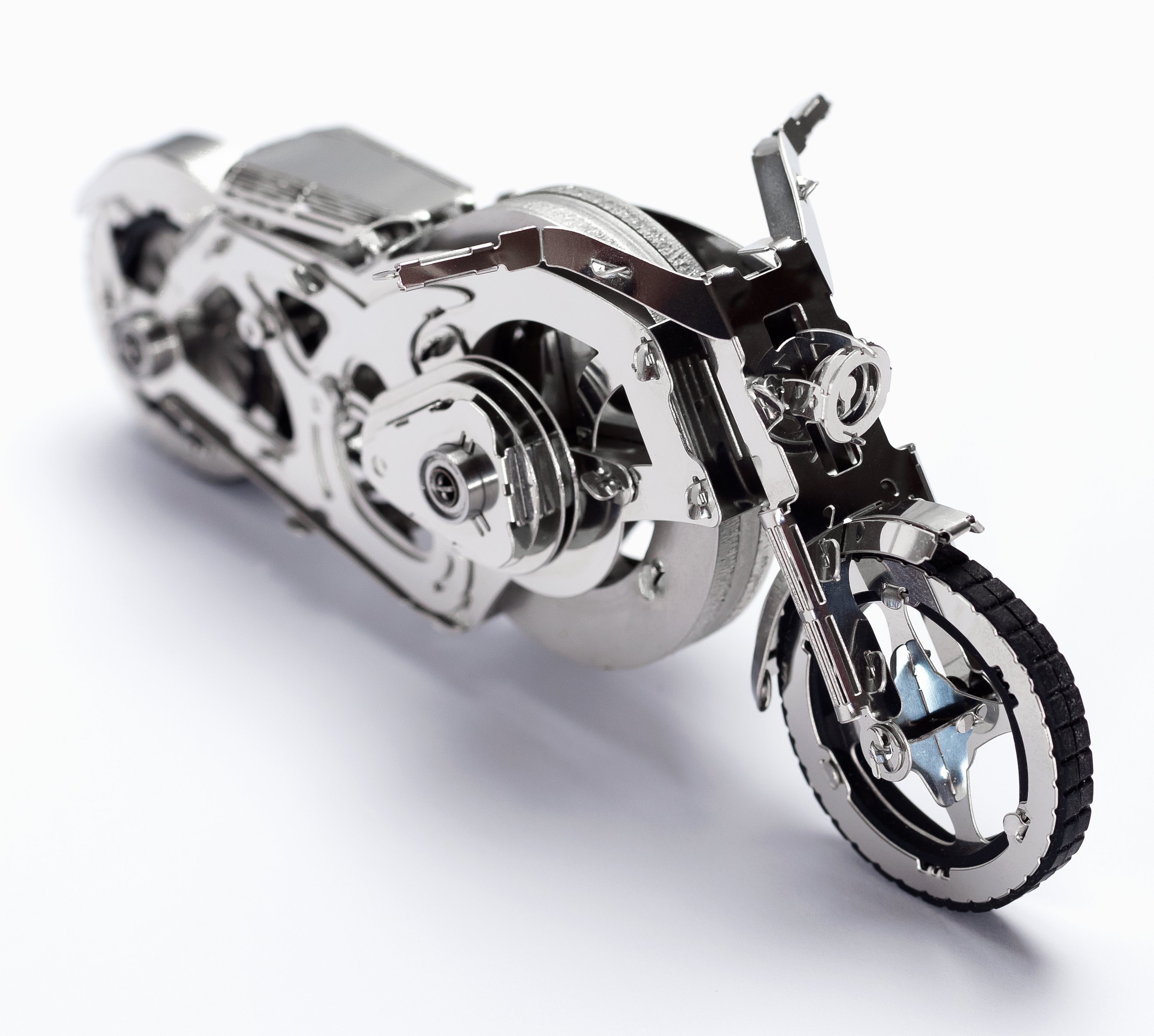 De Chrome Rider is het perfecte model voor echte motorfans en maakt indruk met zijn speciale techniek. De Chrome Rider wordt niet aangedreven door een veer maar door een vliegwiel, waarmee hij gemakkelijk een afstand tot 10 meter kan afleggen en daarbij betrouwbaar zijn evenwicht behoudt, daarbij ondersteund door de beweegbare stuurvork. De wielen zijn gelagerd voor een bijzonder soepele loop en de loopvlakken zijn gemaakt van rubber voor een betere tractie.