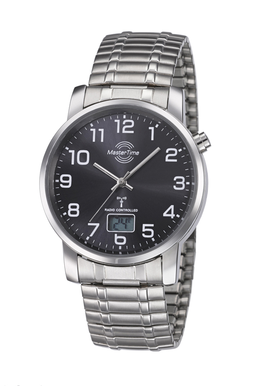 MasterTime Herren-Funkuhr Basic, silber/ schwarz - mit Zugband - MTGA-10308-22M