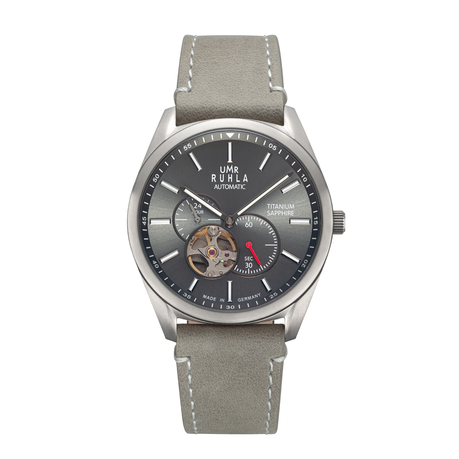 Uhren Manufaktur Ruhla - Automatisch polshorloge - Grijze leren band